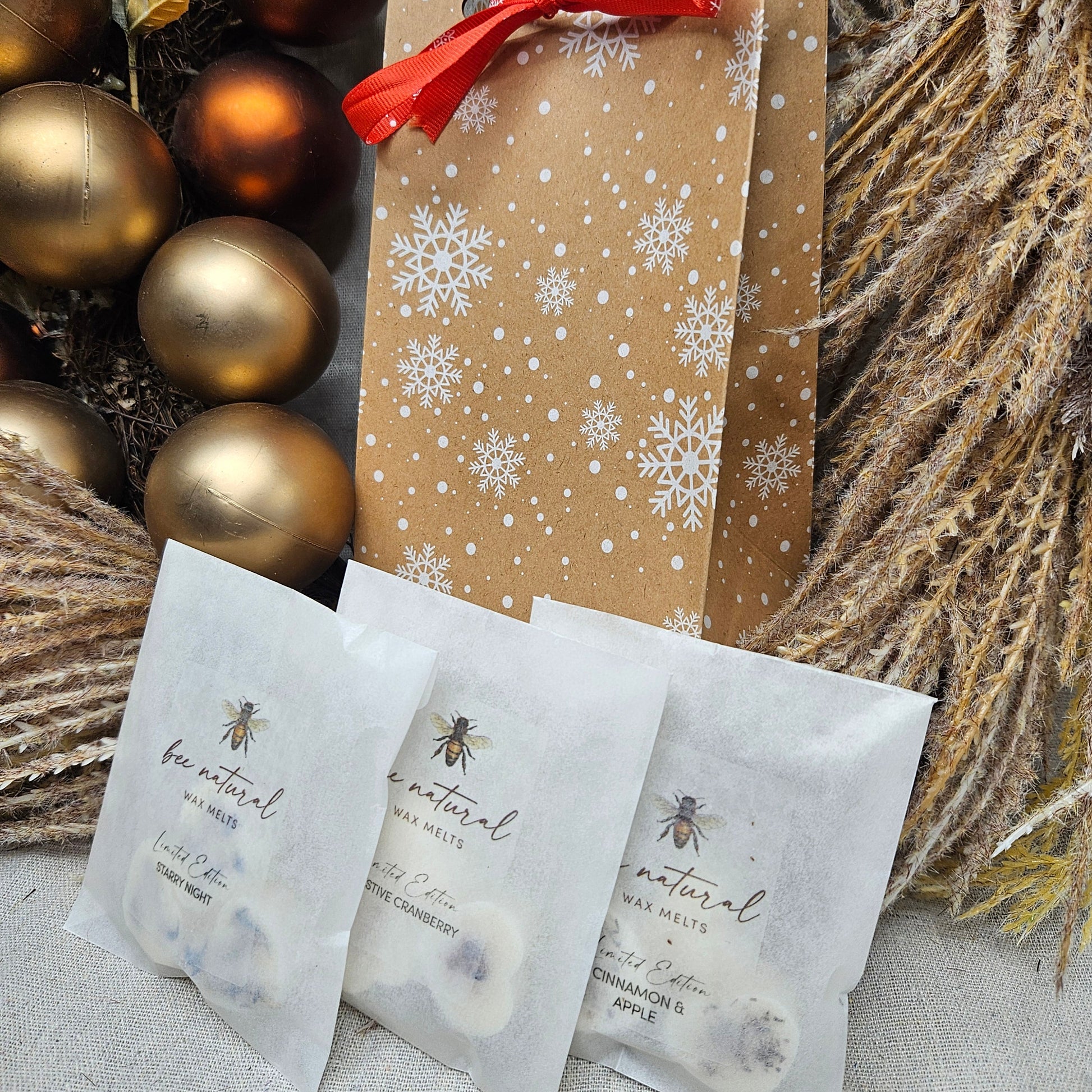 LIMITED EDITION these Mystery Gift Bags contain 9 individual soy wax melts in 3 fragrances which include seasonal fragrances, and MAY include fragrances from our core range /limited edition fragrances! all packaged in a brown kraft design bag and tied with seasonal ribbon. Limited number available and when they are gone, they're gone.......